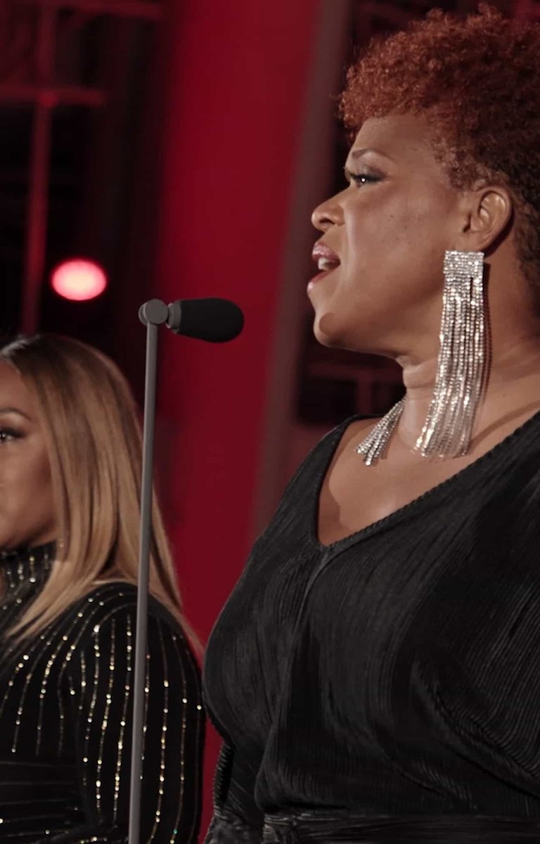 To close our celebration, a piece that was part of that first Easter sunrise service, the traditional hymn “All Hail the Power of Jesus’ Name,” sung for us by the duo Mary Mary. Named for Jesus’ mother and Mary Magdalene, Mary Mary are sisters Erica Atkins-Campbell and Trecina (Tina) Atkins-Campbell, the closest of the nine Atkins children from Inglewood. From the beginning, success followed success as the two contemporary gospel singers went on to be nominated for 11 Grammys—winning four times—and sold more than eight million records worldwide.