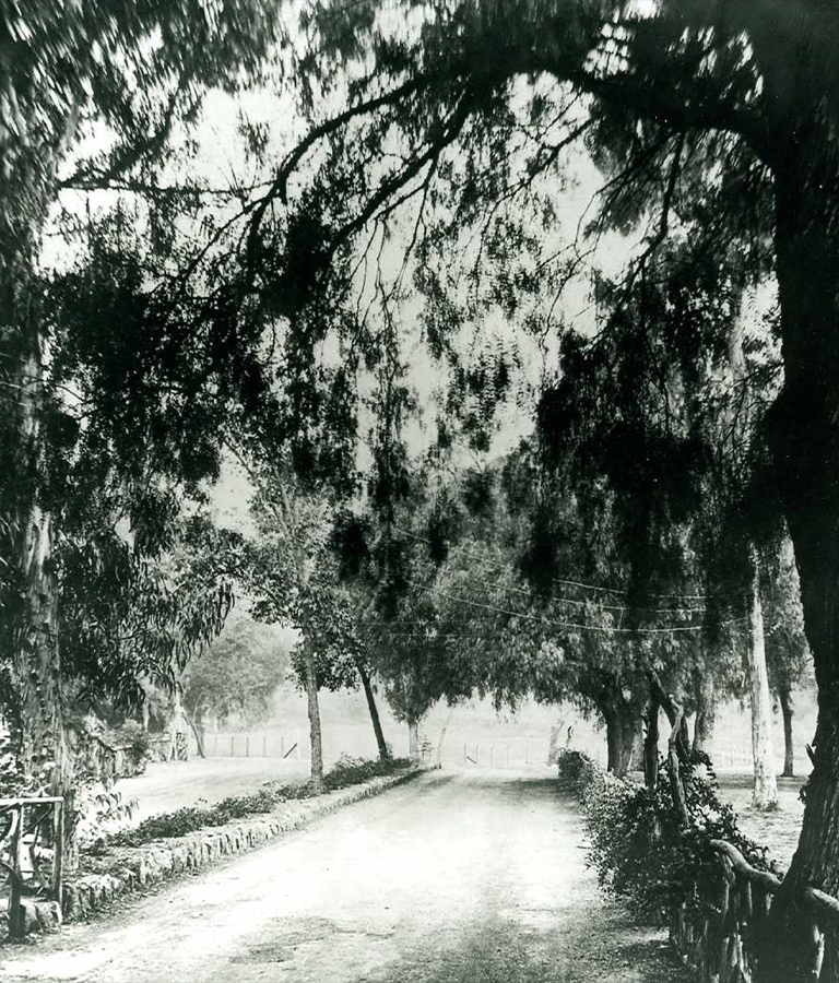 A view of the main entrance to the Bowl, Pepper Tree Lane, in the 1920s. From the California Historical Society Collection at the University of Southern California.