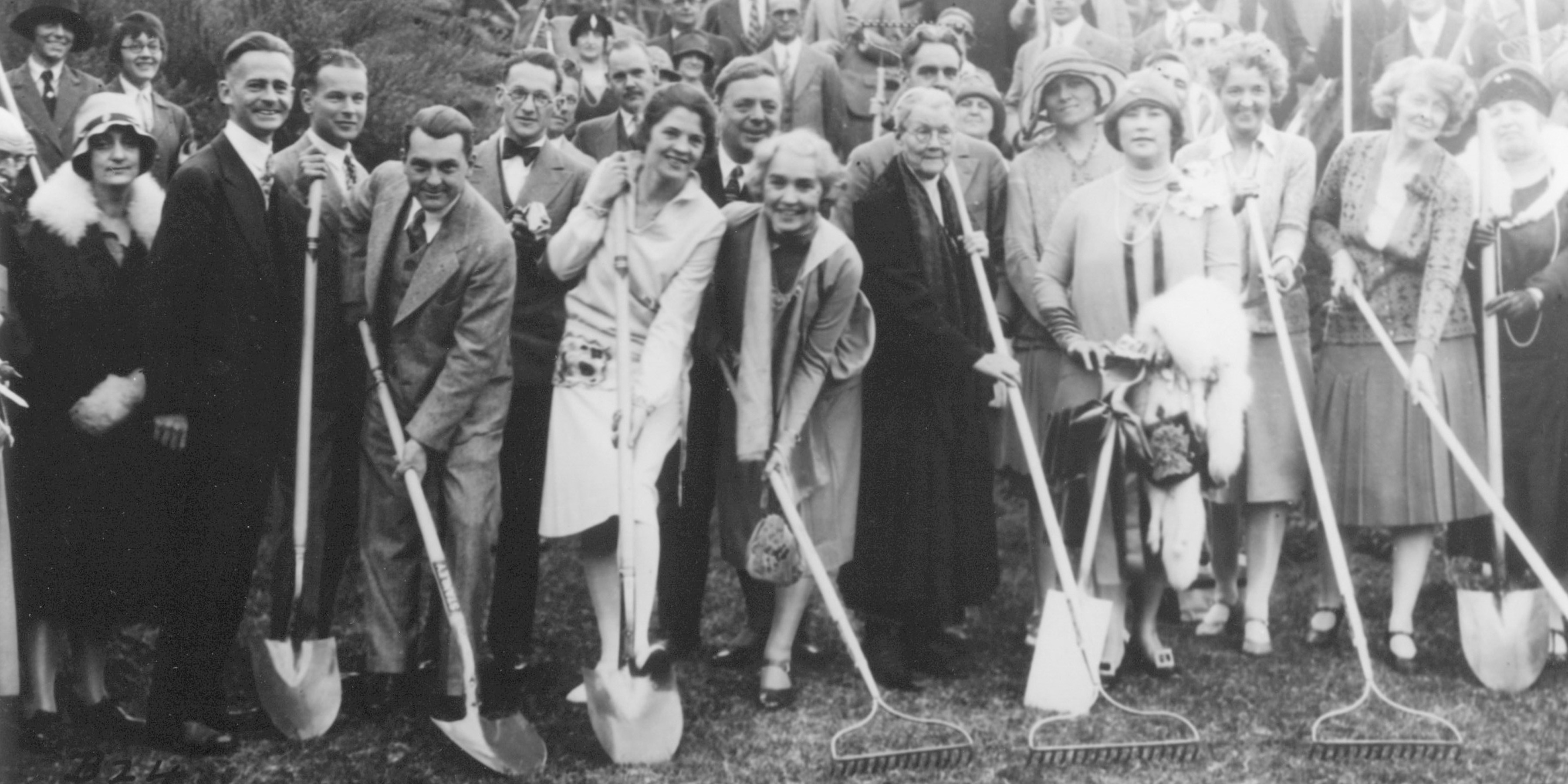 Hollywood Bowl founder Artie Mason Carter with her “army” of volunteers, begin work on clearing the Bowl’s grounds, circa 1922.