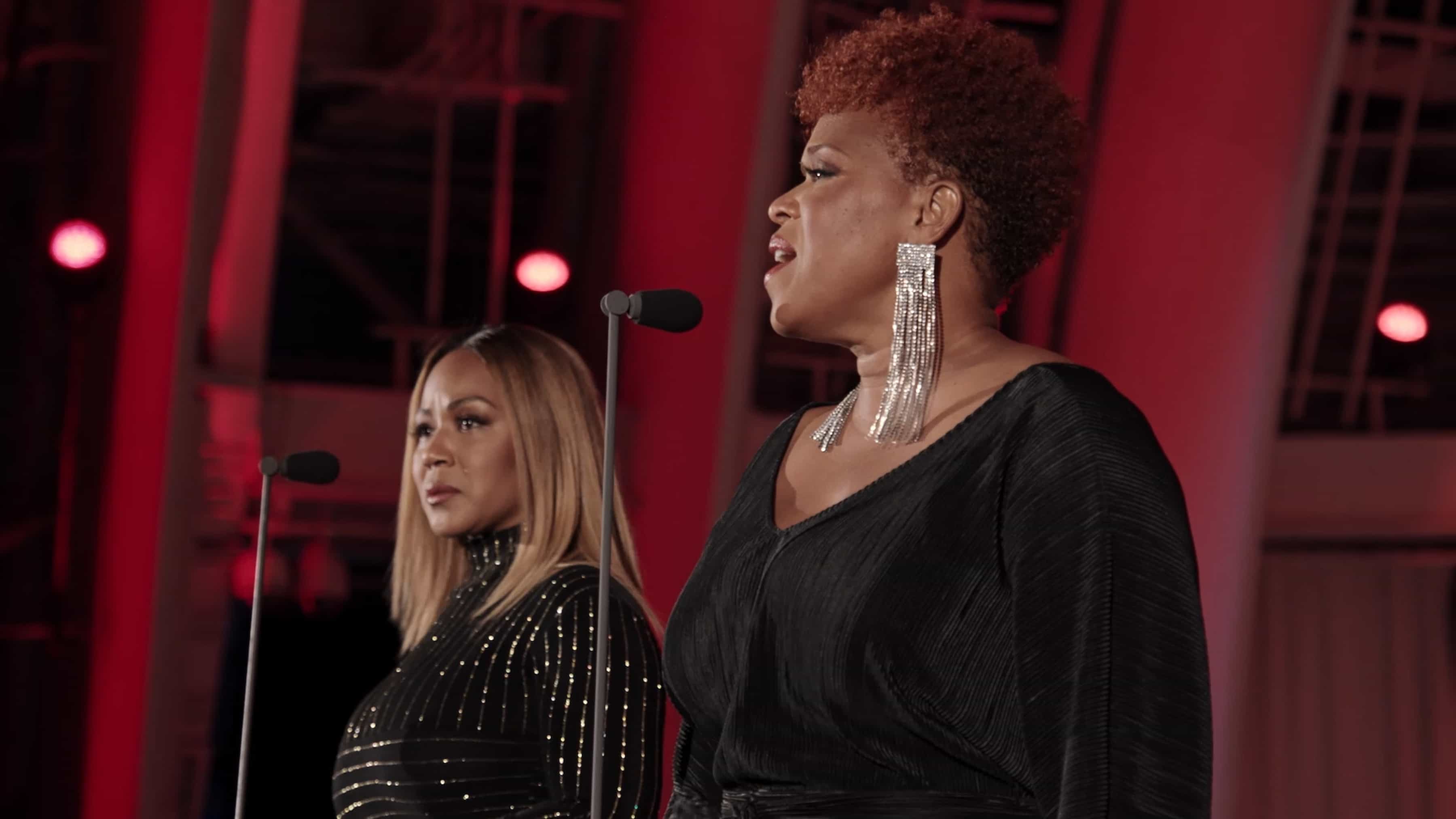To close our celebration, a piece that was part of that first Easter sunrise service, the traditional hymn “All Hail the Power of Jesus’ Name,” sung for us by the duo Mary Mary. Named for Jesus’ mother and Mary Magdalene, Mary Mary are sisters Erica Atkins-Campbell and Trecina (Tina) Atkins-Campbell, the closest of the nine Atkins children from Inglewood. From the beginning, success followed success as the two contemporary gospel singers went on to be nominated for 11 Grammys—winning four times—and sold more than eight million records worldwide.